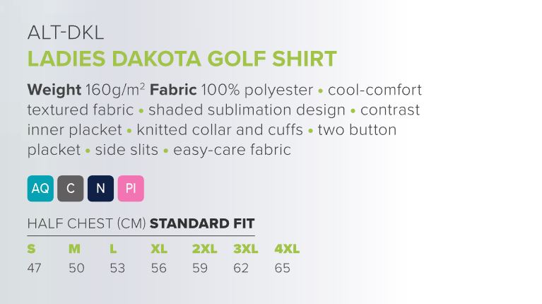 Dynamic style meets everyday performance in the Dakota Golf Shirt. Made from lightweight 160g/m² 100% polyester, it features a cool comfort textured fabric designed to keep you fresh, dry, and comfortable throughout the day.