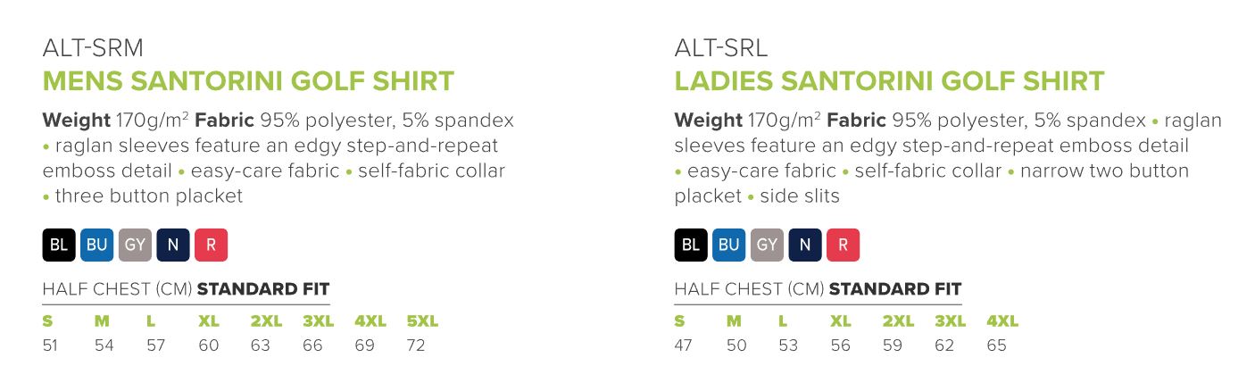 The raglan sleeves feature a striking step-and-repeat emboss detail for a bold, contemporary edge, while the self-fabric collar and narrow two-button placket add a clean, refined touch. Finished with side slits for ease of movement and a standard fit, the Santorini blends performance and style effortlessly.